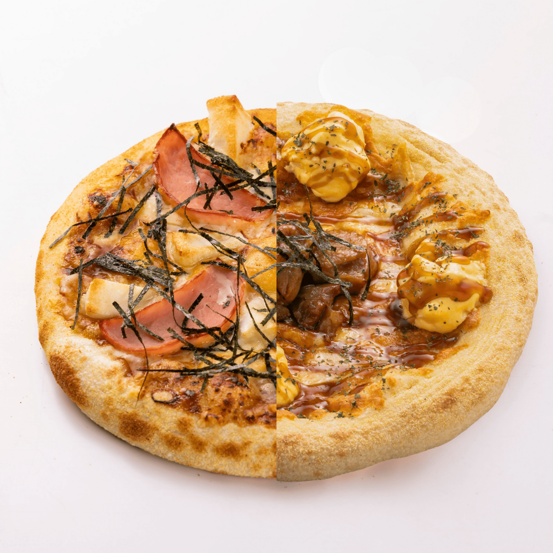 おもちDXとテリたまチキンのハーフ&ハーフ。Large限定商品です。