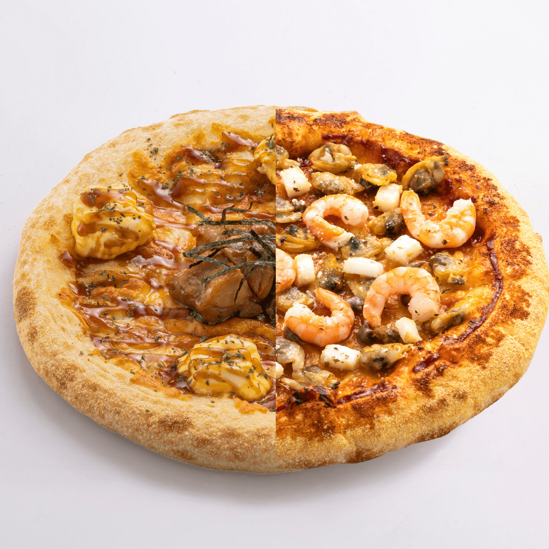 テリたまチキンと三つ星シーフードのハーフ&ハーフ。Large限定商品です。